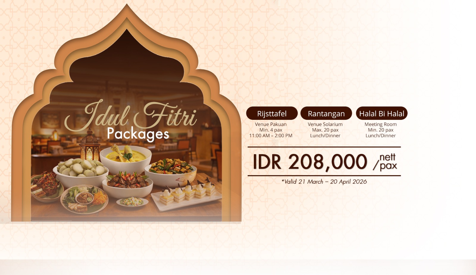 Kami menyediakan 17 ruang pertemuan, 2 Mini Ballroom, dan 1 Grand Ballroom yang ideal untuk pernikahan, konferensi, atau acara besar lainnya. Foyer yang luas dapat menampung hingga 2.500 tamu dan dapat dibagi menjadi 5 ruang pertemuan terpisah untuk fleksibilitas yang lebih besar.
