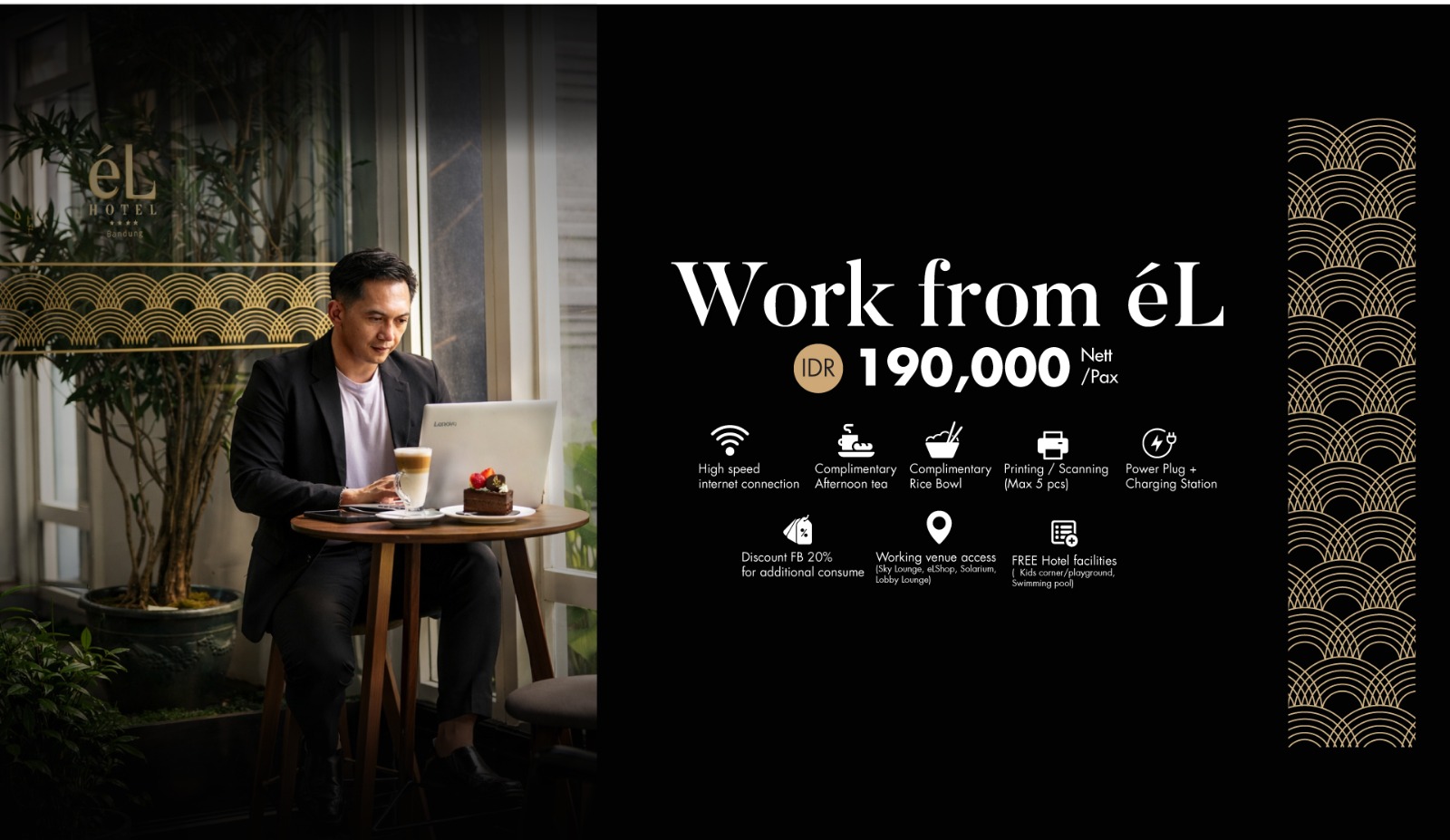 éL Hotel Bandung memahami kebutuhan Anda untuk menikmati setiap hidangan yang disajikan. Oleh karena itu, kami hadir dengan berbagai macam hidangan yang membangkitkan cita rasa, untuk melengkapi pengalaman bersantap Anda. Namun, tidak hanya itu, atmosfer yang tercipta di restoran dan lounge kami juga akan membuat kunjungan Anda tak terlupakan.